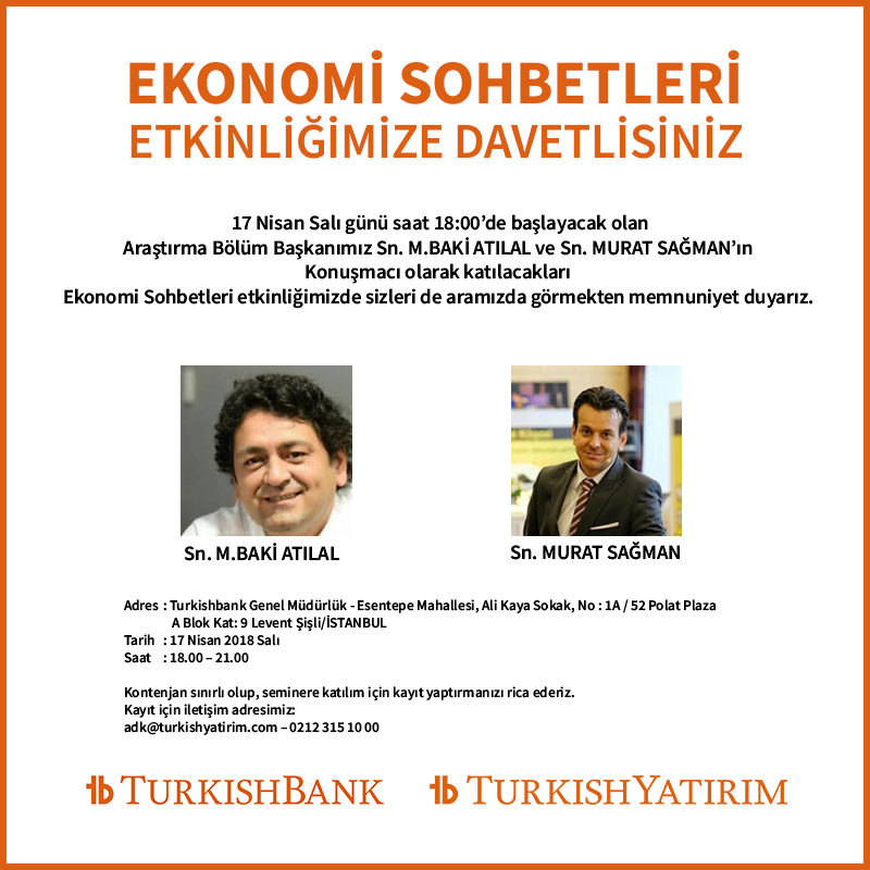 View Larger Image Ekonomi Sohbetleri Etkinliğimize Davetlisiniz Kontenjan sınırlı olup, seminere katılım için kayıt yaptırmanızı rica ederiz. İletişim İçin: Rate this post Turkish Yatırım2018-04-10T11:22:14+03:00Haberler| Paylaş! FacebookTwitterLinkedInRedditTumblrPinterestVk
