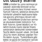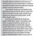 Turkish Yatırım Menkul Değerler A.Ş. Genel Müdürü ve Yönetim Kurulu Üyesi Tevfik Metin AYIŞIK oldu.