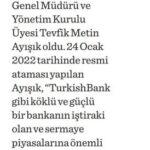 24 Ocak 2022 tarihinde resmi ataması yapılan Tevfik Metin Ayışık, “TurkishBank gibi köklü ve güçlü bir bankanın iştiraki olan ve sermaye piyasalarına önemli katkı sağlayan Turkish Yatırım’da bu önemli görevi almaktan mutluluk duyuyorum.” dedi.